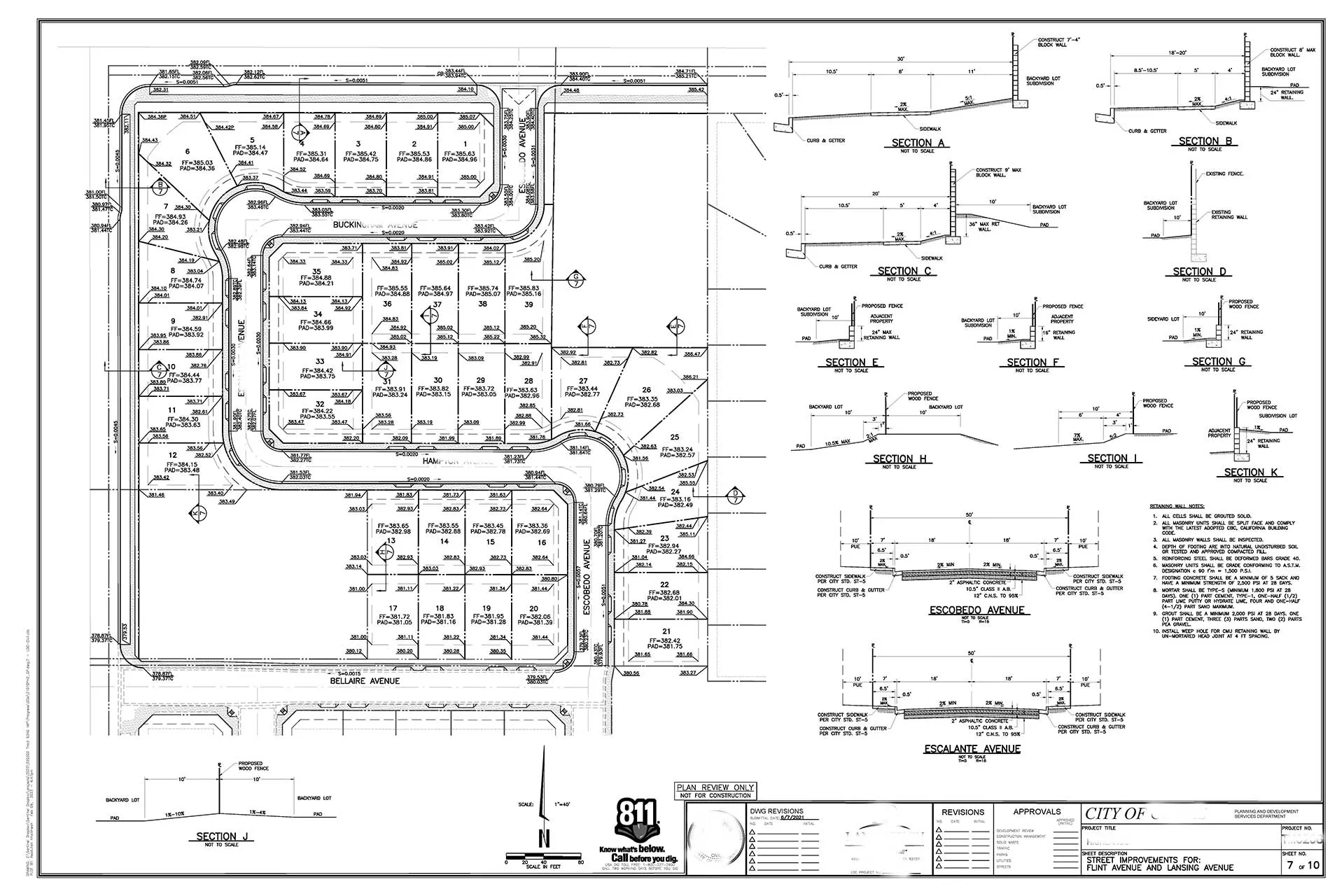 Site Plans – landscape, curbs, utilities, sidewalks (if requested)